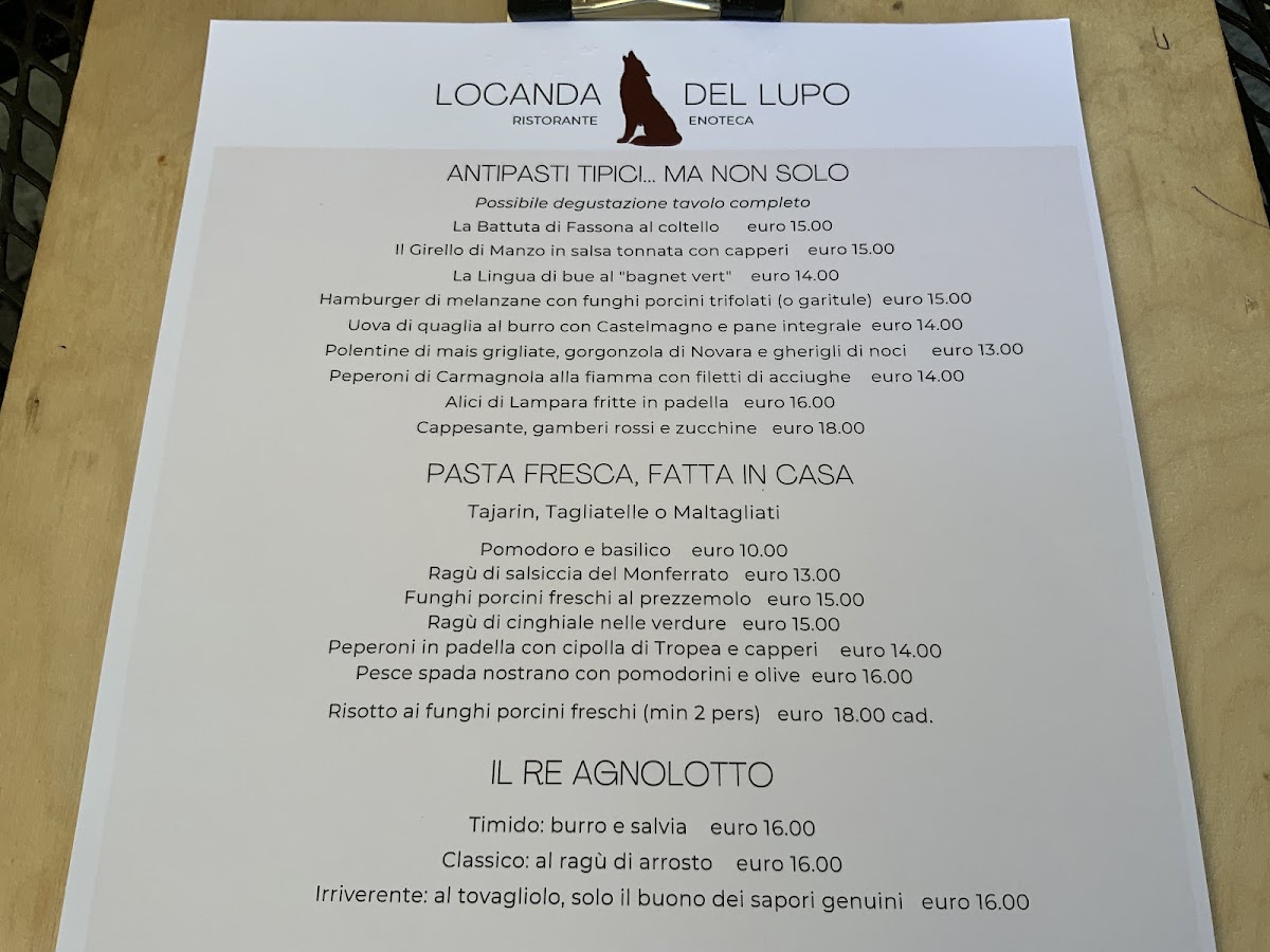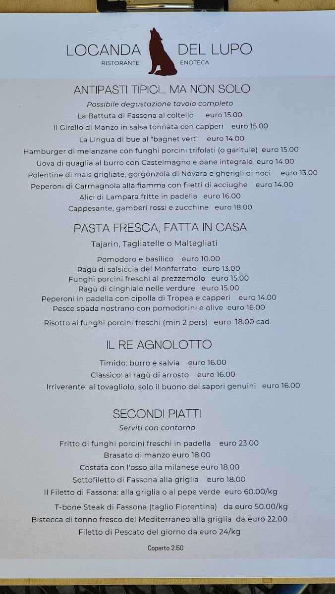 Locanda del Lupo Menu