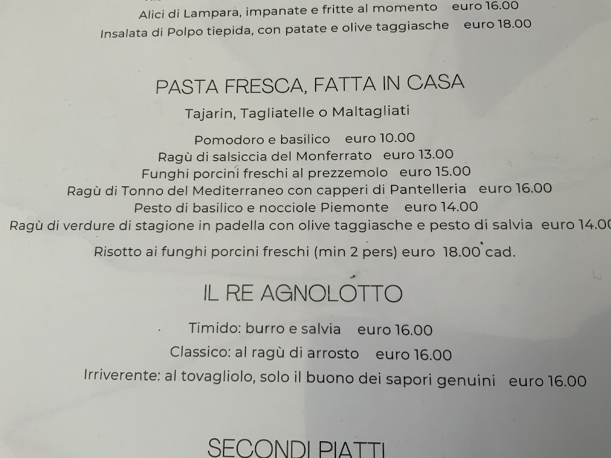- Antipasti include options like girello di manzo with capers and uova di quaglia paired with Castelmagno cheese.